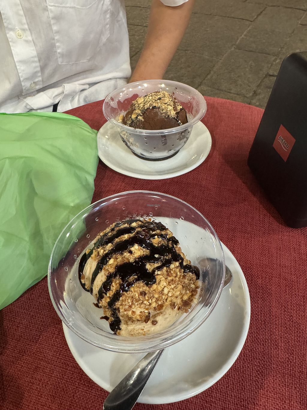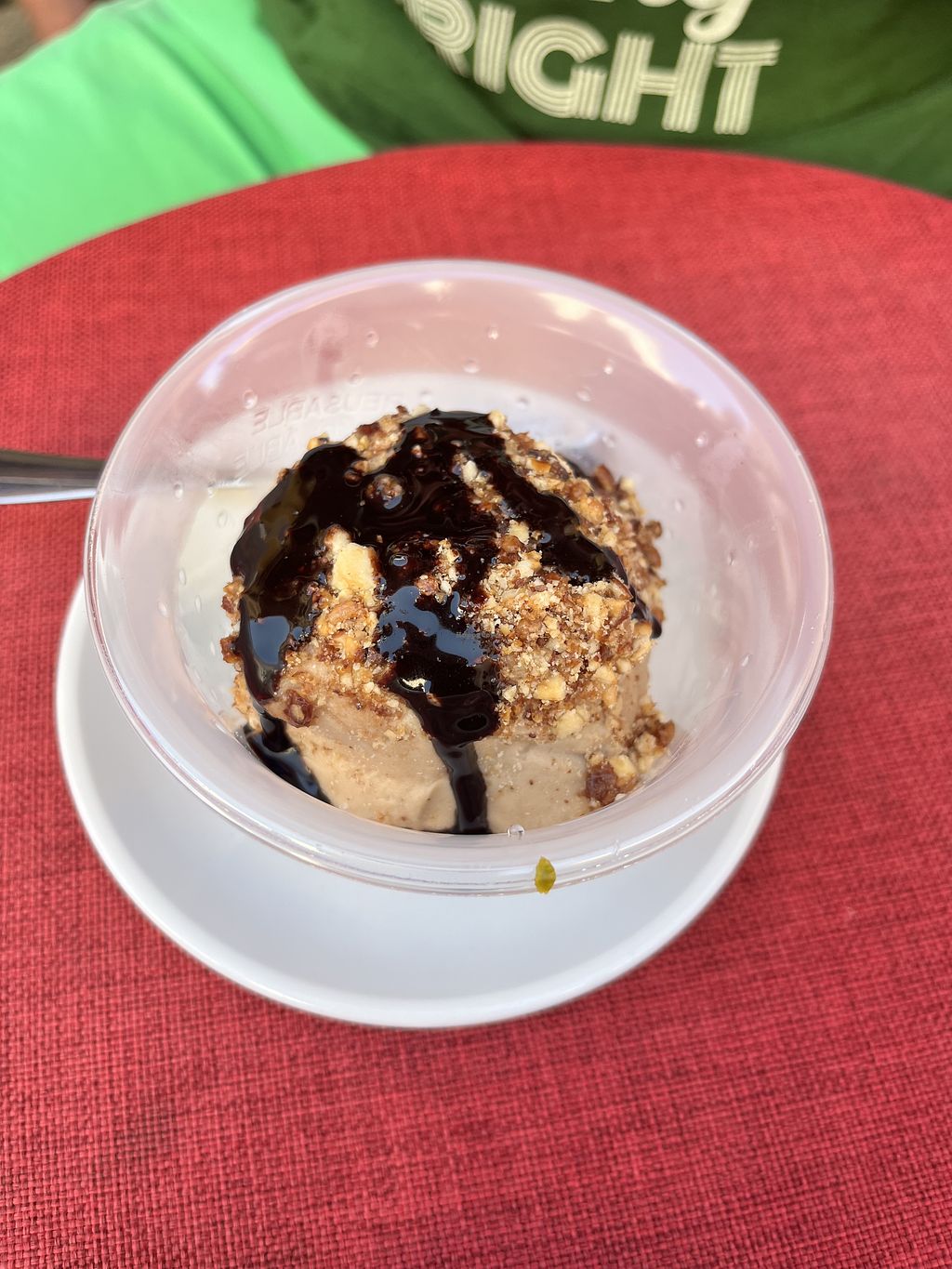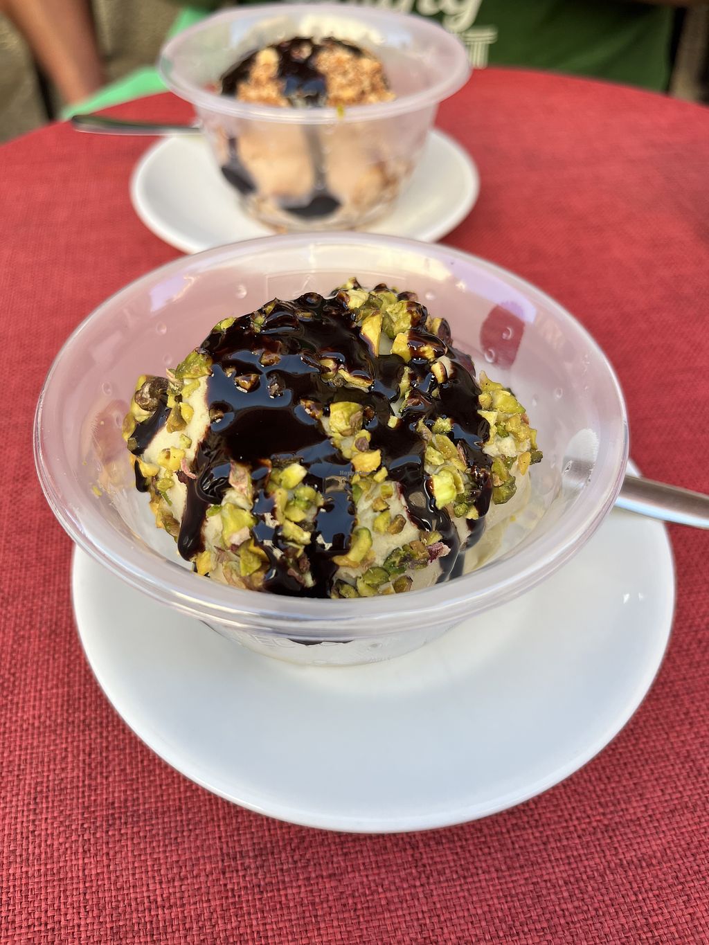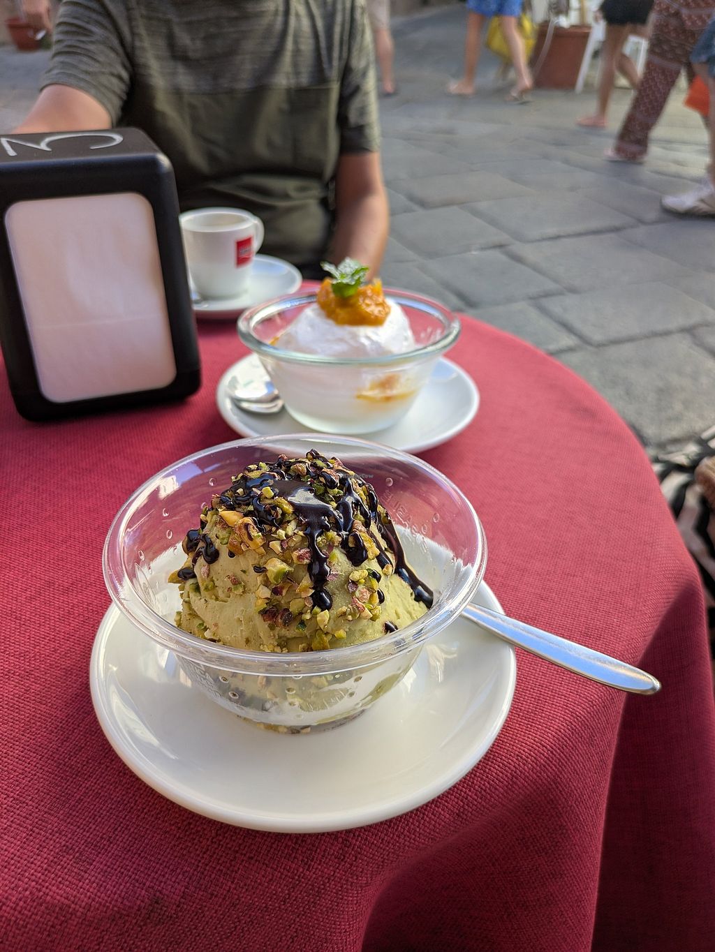 Pistaccio and hazelnut tartufo and soy cappuccino
