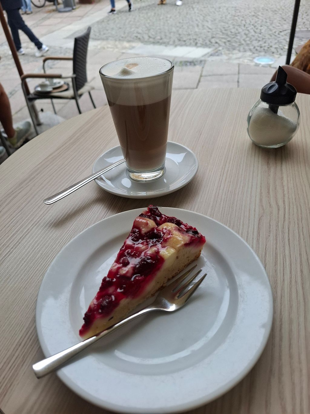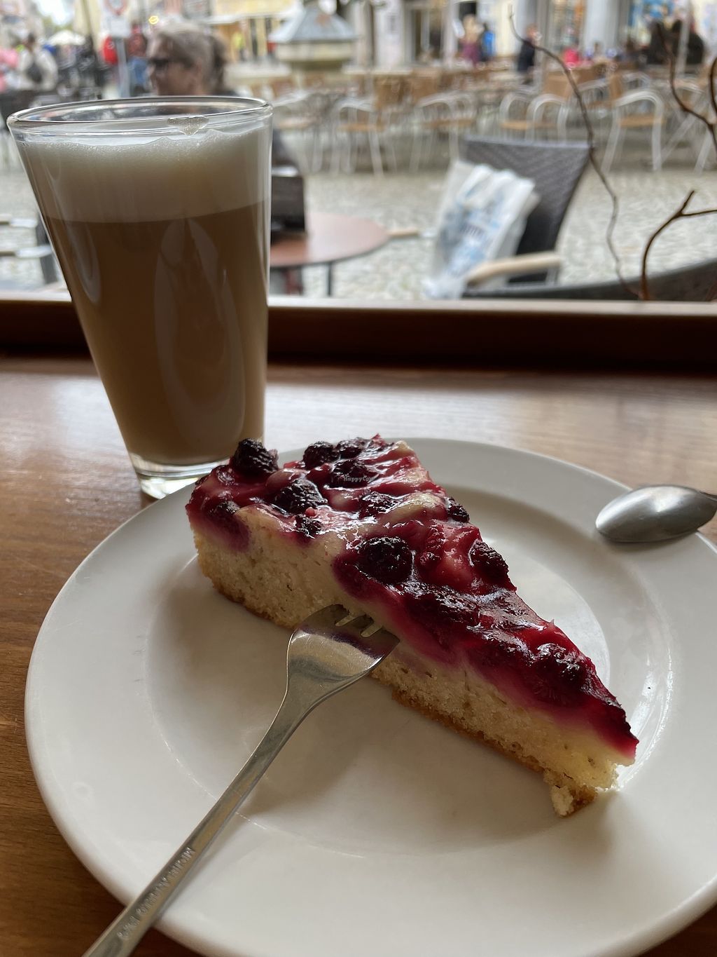 Small Italian café in the old town. Has plant milk for hot beverages and a changing selection of cakes, 1-2 of which are usually vegan. Open Mon-Sat 08:00-18:00, Sun 09:00-16:00.