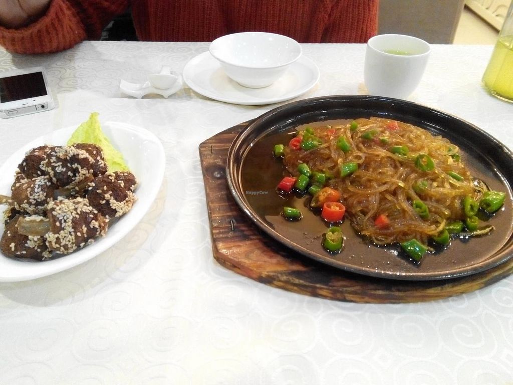 Same company as Yu Su Ge Buffet Vegan Restaurant 4 blocks west on the same street when it becomes Qingnian Rd. This location is a much more modern sit down dining experience. Our waitress spoke some English. She is delightful and very helpful making suggestion both for an against choices. That and the very nice photo menu book with English and pricing for the 60+ choices plus drinks including non alcohol beer and desserts and it is fairly easy to have a very pleasant meal. We had Sweet and Sour Ribs 24 RMB($4) that were a bit chewy and sweet but nice, Steam Tofu with Lotus Leaf that is a large Tofu, mushroom, vegetable soup with fake ham and shrimp 36 RMB($6), the veggies were lightly cooked and delicious. The Wheat buns(3) with stuffing 12 RMB($2) were very good and the favorite of our non vegetarian friend. The Vegatable balls 26 RMB($4.30) were recommended and terrific though the non vegetarian thought they tasted of chlorophyll to me they tasted healthy. Total bill 98 RMB ($16) no drinks or dessert.