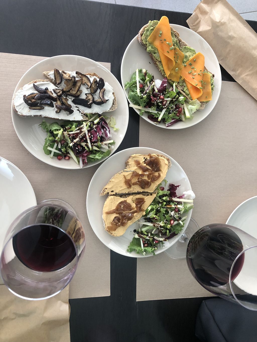 Vegan tapas: vegan cream cheese toast with mushrooms ; humus and caramβ¦