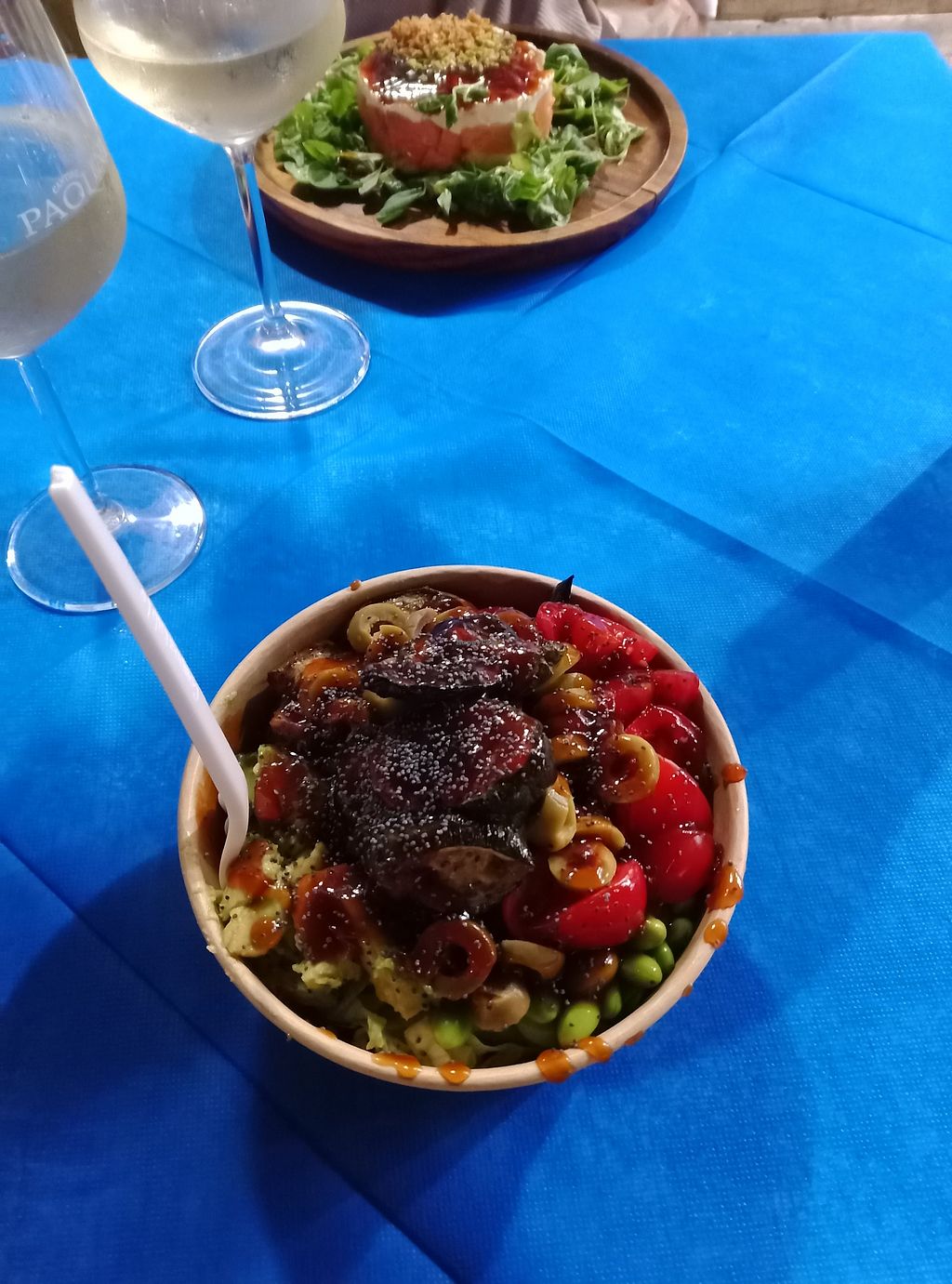 There was a vegan option unfortunately they put some yoghurt sauce in our vegan pokè so it wasn’t vegan anymore. It’s some rice and veggies. It was totally fine but we expected more for 14€. I mean these are island prices but could be bigger portion sizes…