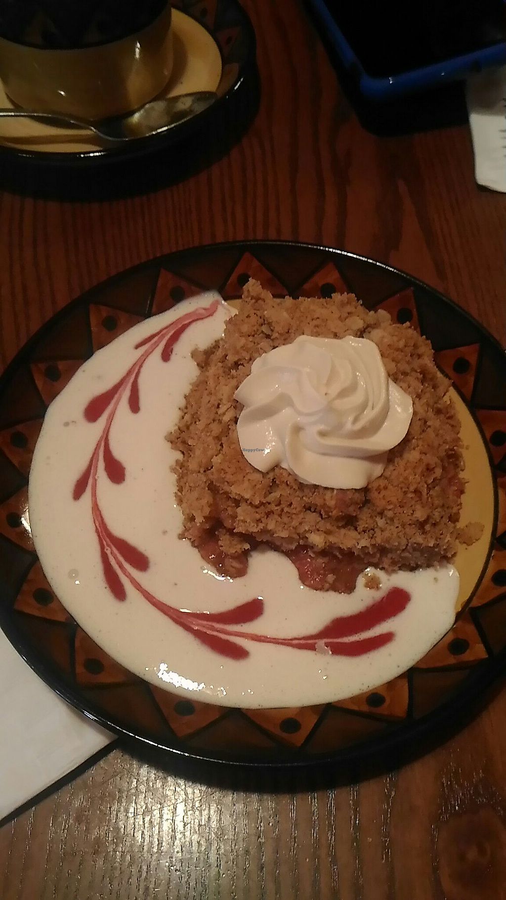 The vegetable pakoras and the lasagna with cashew cheese were both delicious and very satisfying in an area with not a lot of vegetarian restaurants. We also had blueberry smoothies, chocolate cake, and strawberry rhubarb crumble, which were all very good.