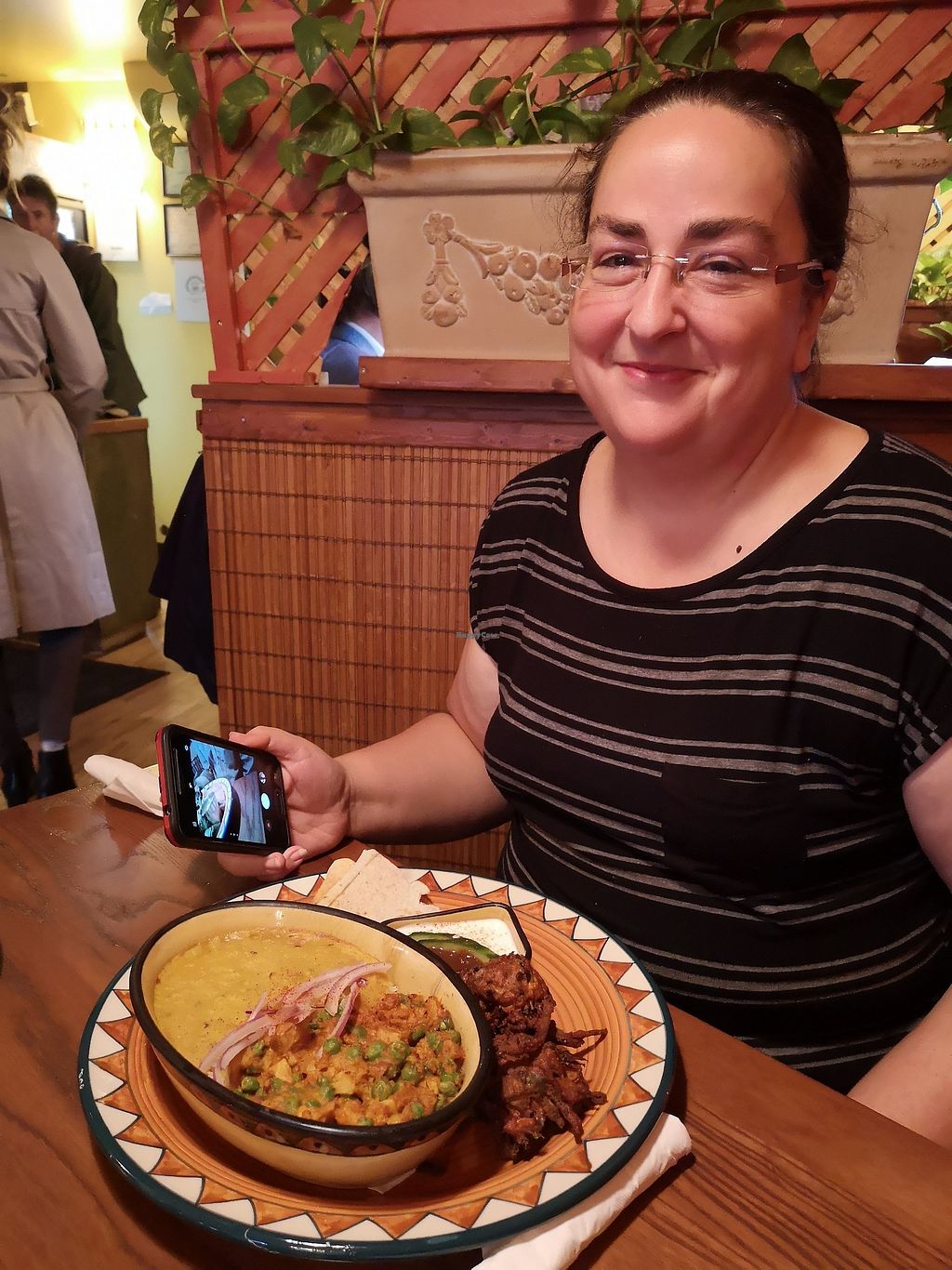 I got the Taj Mahal Thali which had a dal, and cauliflower pea curry on badmati rice with roti and pakoras in a plum chutney. The pakoras were great! The rest was just OK.