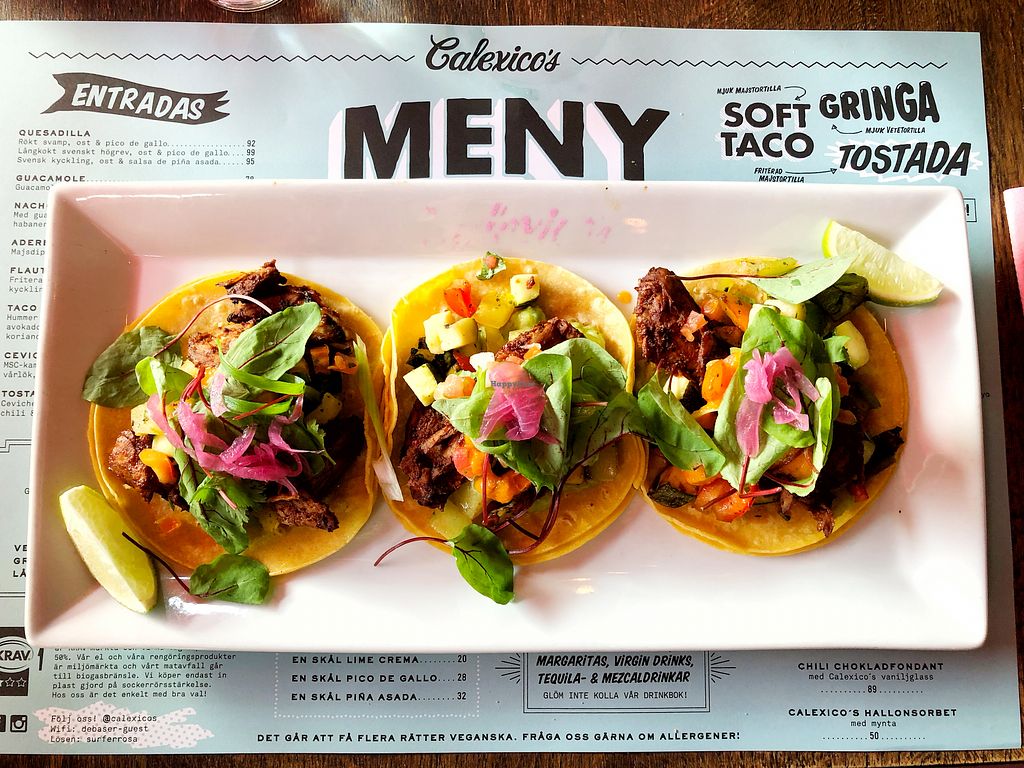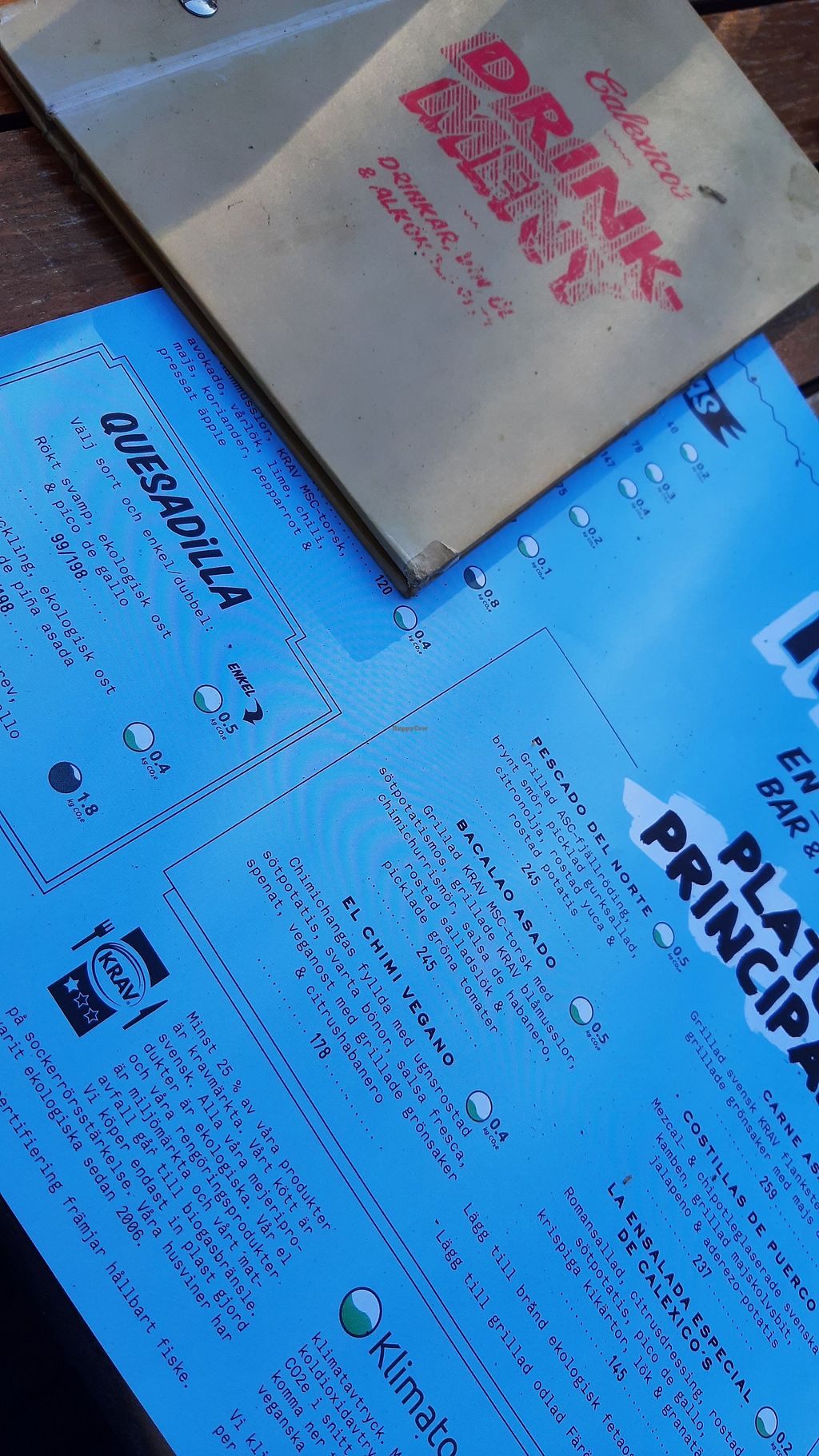 Serves meat, vegan options available. 'Cal Mex' restaurant with vegan and vegetarian dishes available on the menu. All vegetarian dishes can be made vegan. Brunch on Sundays 10:00-16:00 (closed Jun-Aug). KRAV certified. Part of Debaser - one of Sweden's well known music stages; guests can have a full night out with concerts and clubs to hand. Menu states the carbon footprint for each dish with vegan options being the most sustainable. Cashless. Reported closed April 2022.
