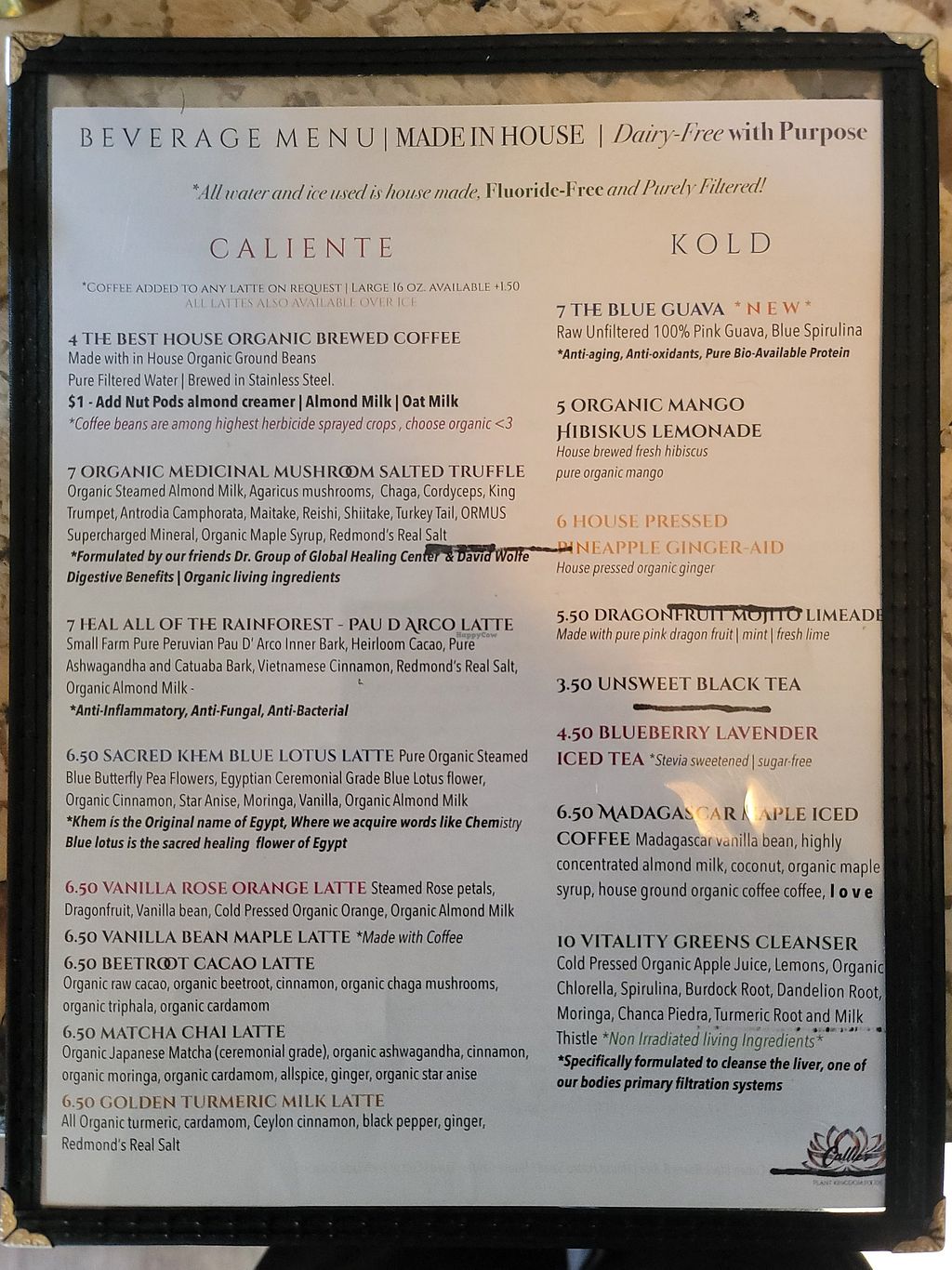 experienced callie’s yesterday, food options were great and all organic & vegan. they did shut down the kitchen at 5 pm on friday when i went so go early
