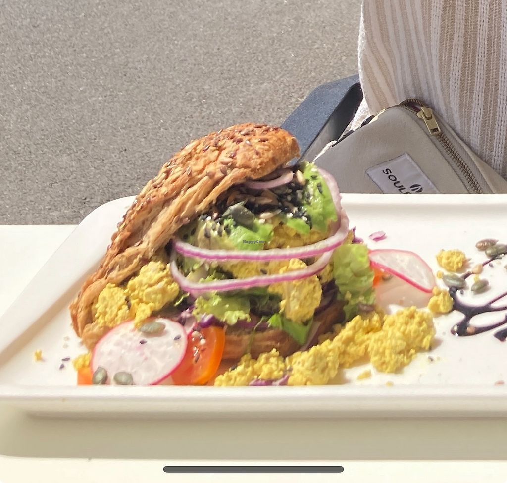 Very friendly staff, and a Menu with amazing and slightly different than the usual vegan options! We really enjoyed the triassant (croissant roll with tofu scramble, avocado etc). We also wanted to try the vegan cinnamon rolls as well but missed them unfortunately!