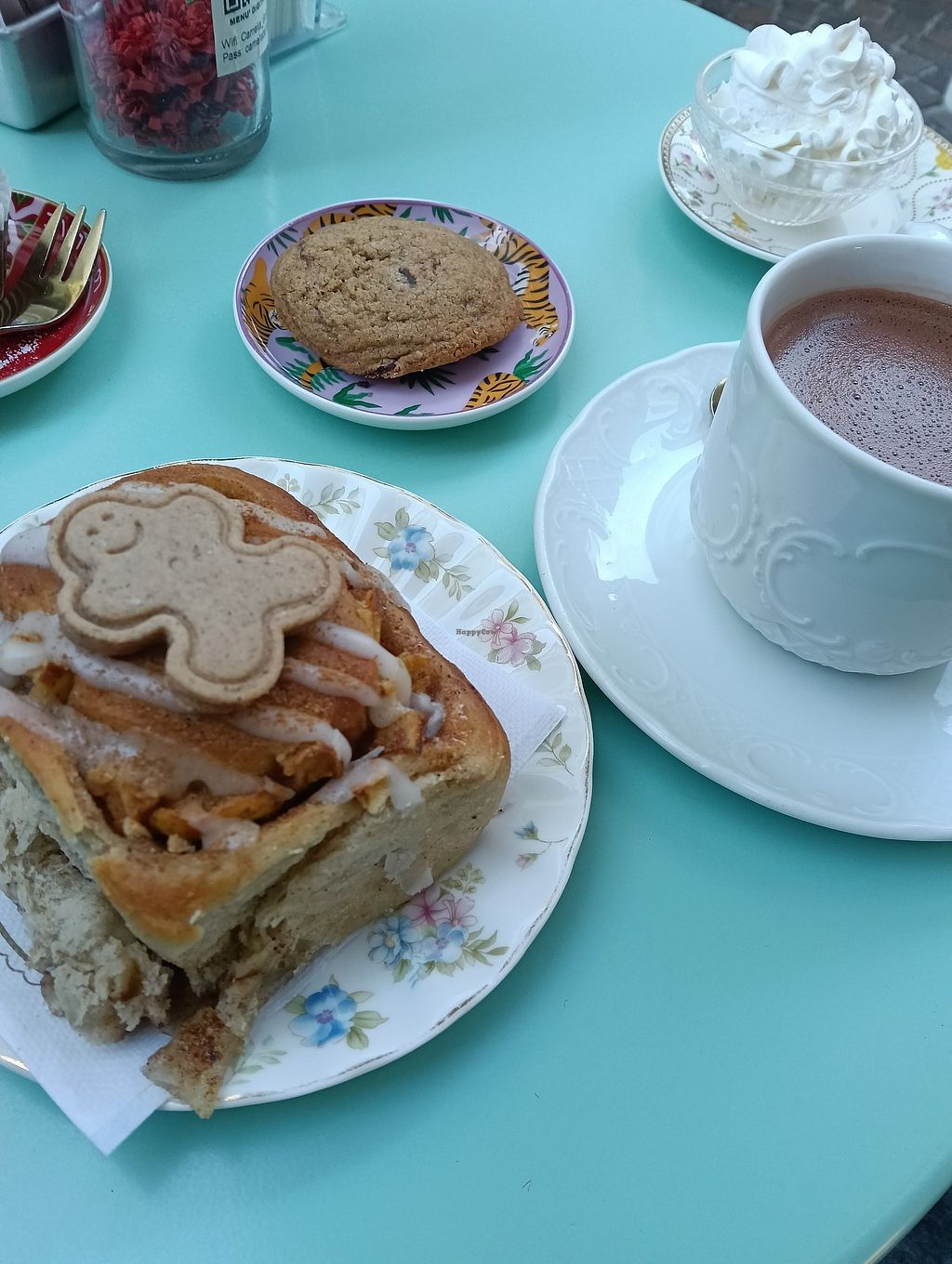 I went there is hopes to have a vegan muffin or cake and hot chocolate but unfortunately they only had 2 dry vegan cookies and the hot chocolate they only make in the winter.