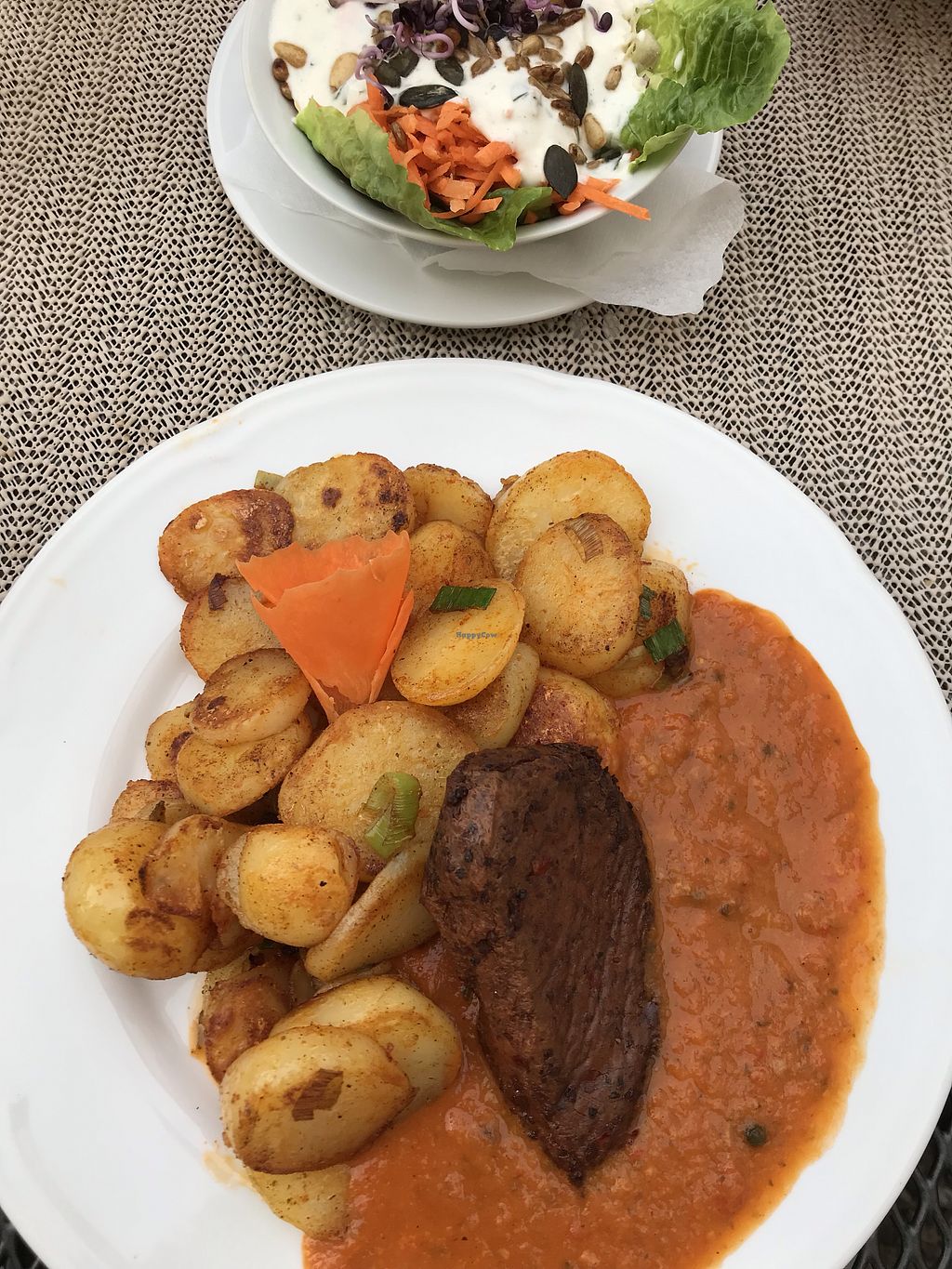 Holzfäller Steak mit Bratkartoffeln und Salat