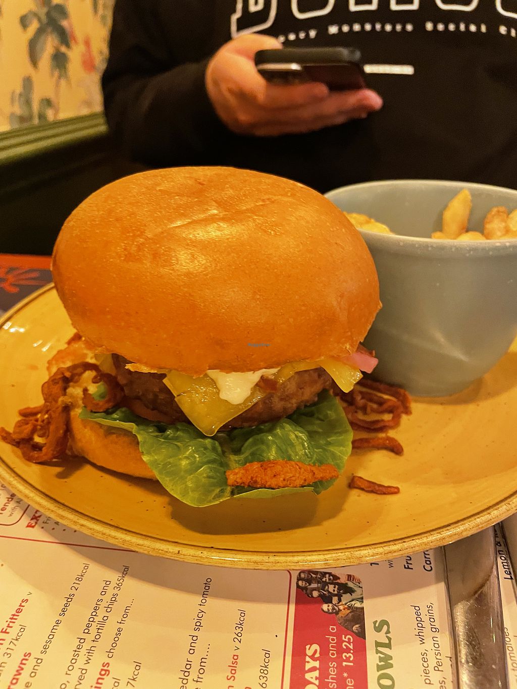 Husband said it was the best vegan burger he’s ever had! Vegan options even clearer when using the app to order (ex. vegan BLT is on app, but on the menu there’s only one vegan option for sandwiches) but loads of vegan food identified on hard-copy menu too. Such friendly staff, very cool interior (cozy, living-room chic!). Dog friendly too!
