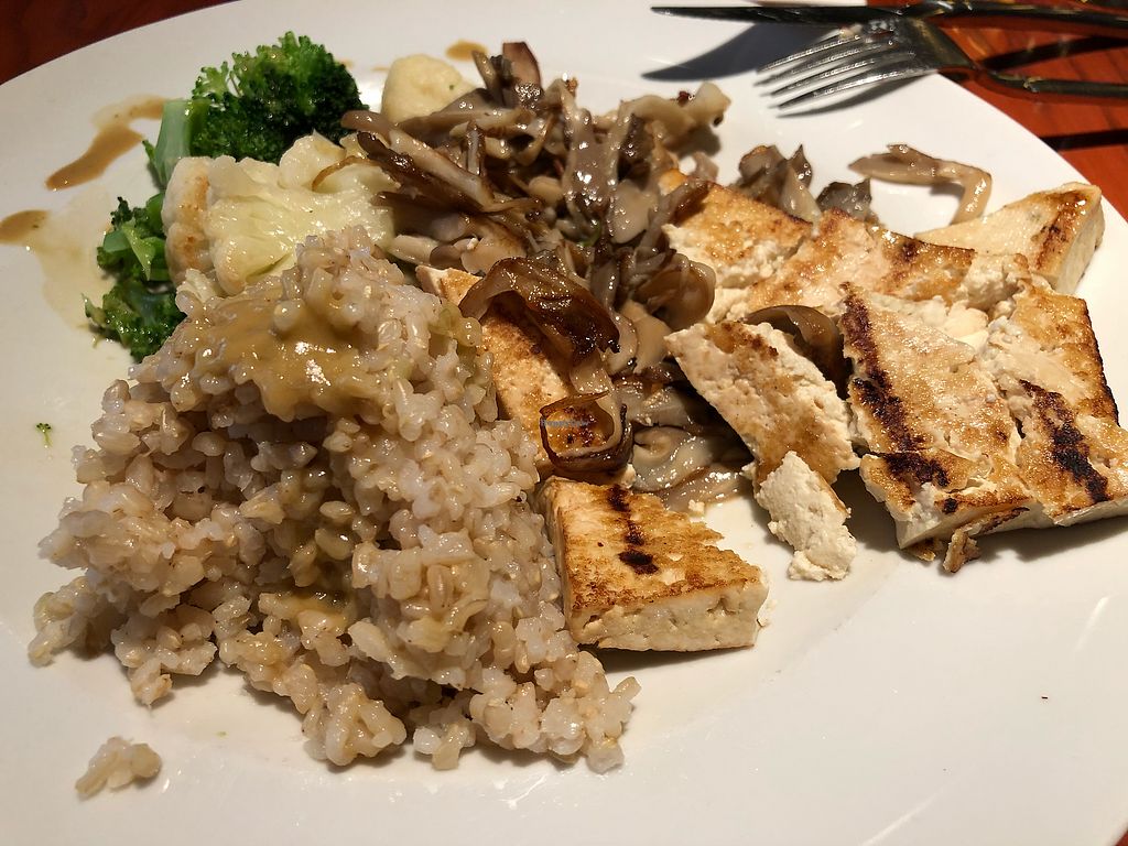 Miso tofu, oyster mushroom, Brown rice, and broccoli and cauliflower b…