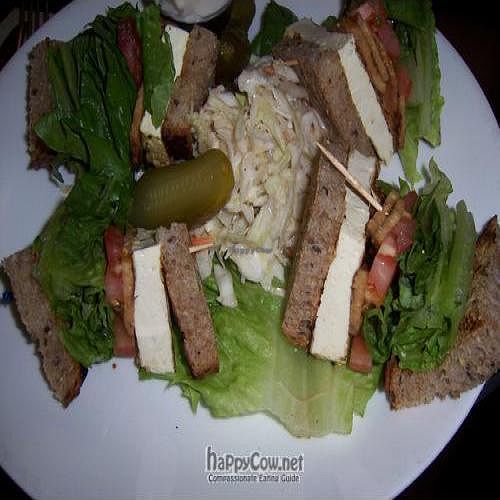 tofu club: Grilled tofu, tempeh bacon, lettuce and tomato on mixed gra…