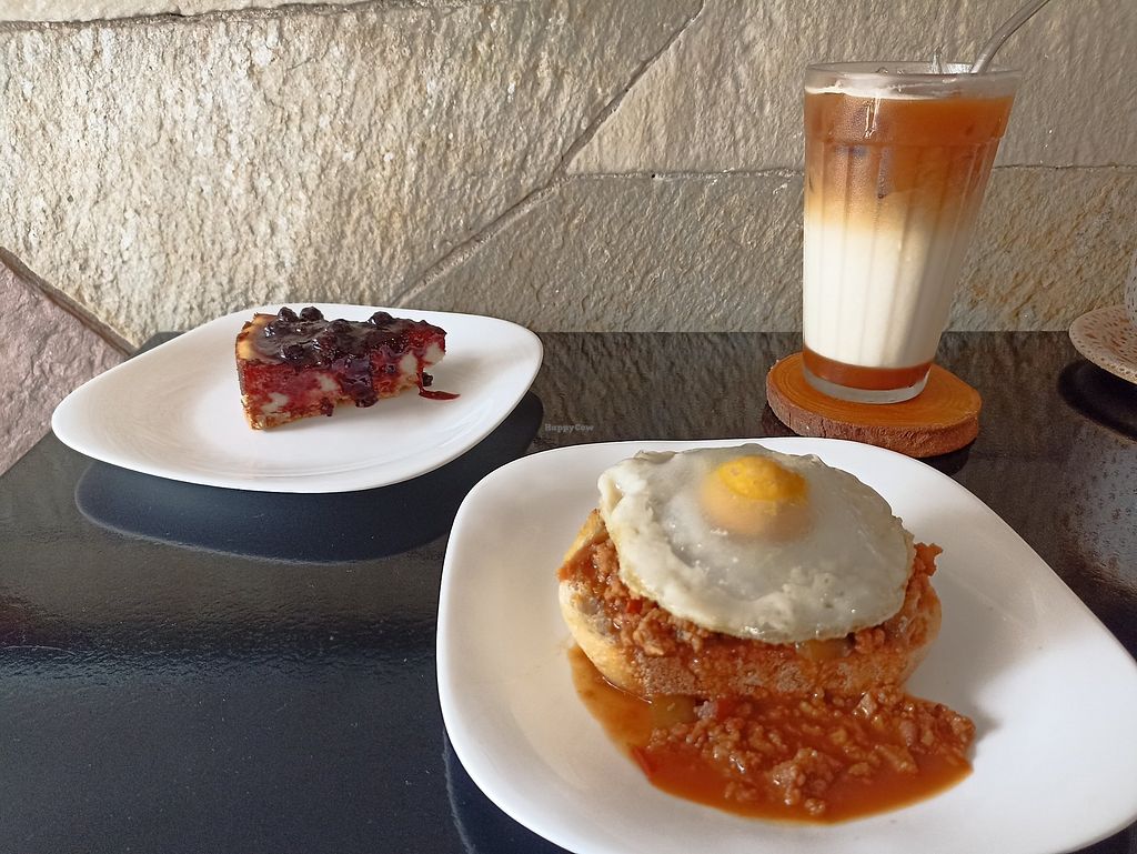 O pão especial, com ovo de grão de bico e bolonhesa é o ponto alto! Diferente e gostoso, valeu a pena! Tem outras coisas como cinnamon roll, brigadeiro de inhame com bons de cacau, cheesecake, bolos, bebidas, etc. eles servem água da casa, que pra mim sempre é um pontinho a mais