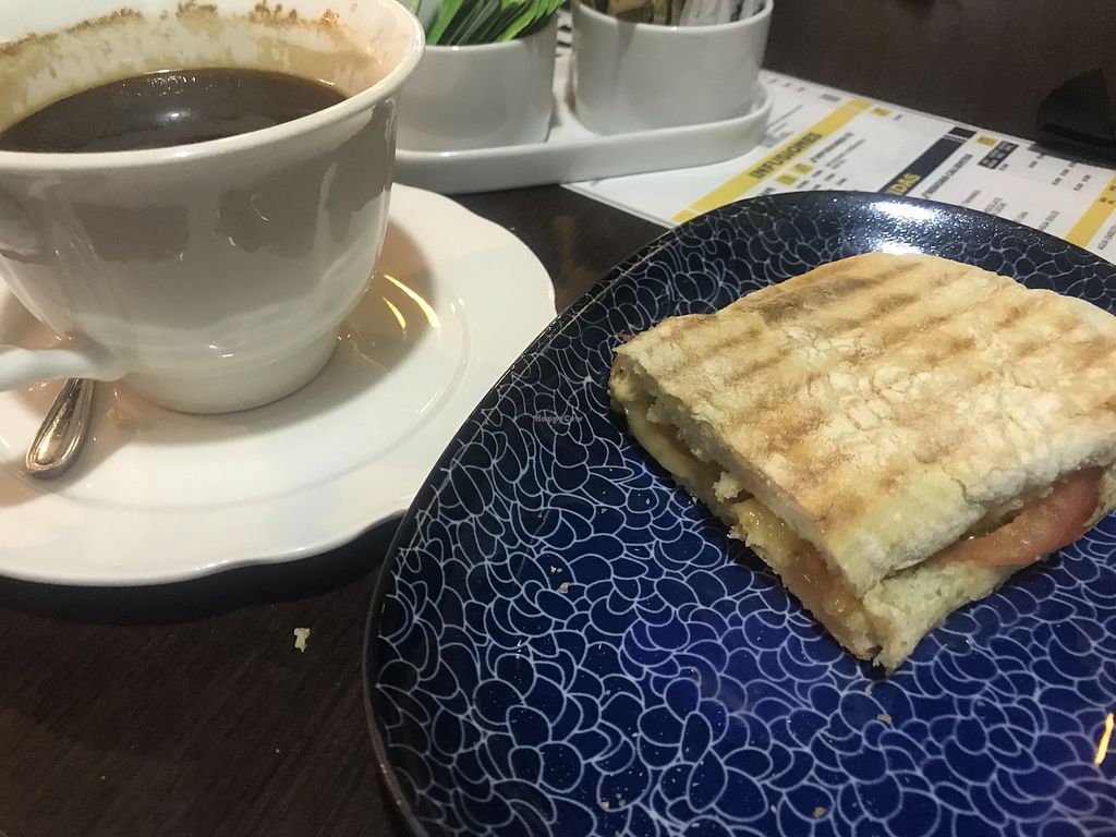 Vegan Three Cheese Sandwich with Tomato and Coffee!