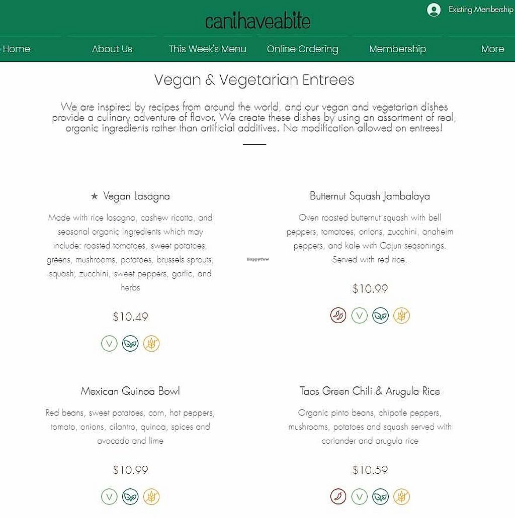 Serves meat, vegan options available. Takeaway organic carryout where you pre-order online in advance. No walk-ins. Menu changes weekly. Lists vegan & vegetarian entrees in a section on its website. Reported closed November 2023.