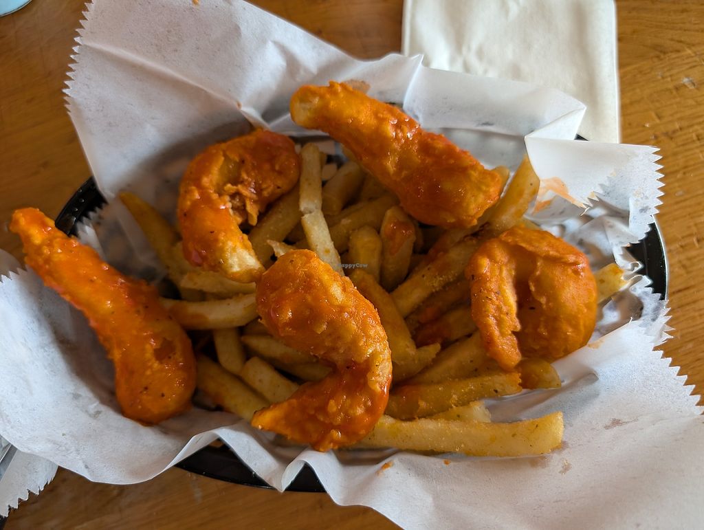 I tried the BIG MIK and the vegan shrimp. The burger was really good, although a bit too salty for me personally. It’s hard to make good vegan burgers. I’ve tried many and I’m disappointed more times than not! The fries are really good (and Im very picky about fries) i got the shrimp with the buffalo sauce on the side. The breading was seasoned well (also a bit salty for me) the buffalo sauce was really tasty also.. overall it was great.. a bit pricey but that’s expected for vegan fast food. Total was $35 for both dishes..