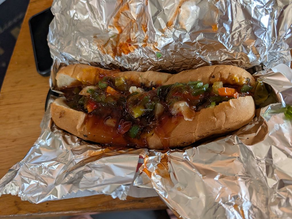 Had to stop here while visiting a friend in Chicago. We went on a Sunday night and it was packed. There are 2 restaurants in this unit and parking was tight. We ordered the Chicago Hot Dog (vegan), Philly Cheesesteak sandwich, and Philly Cheesesteak Egg Rolls. The hot dog was small, the fries were cold, we didn’t get the sauce for the egg rolls or the ketchup packets. My friend liked her sandwich. The egg rolls were really good, and I’m sad I didn’t get to try the sauce. You could not tell the egg rolls were vegan. Super tasty. I think I paid almost $50 for the 3 items, plus a tip, so not inexpensive. Wish they’d ditch the dairy cheese and go full vegan!