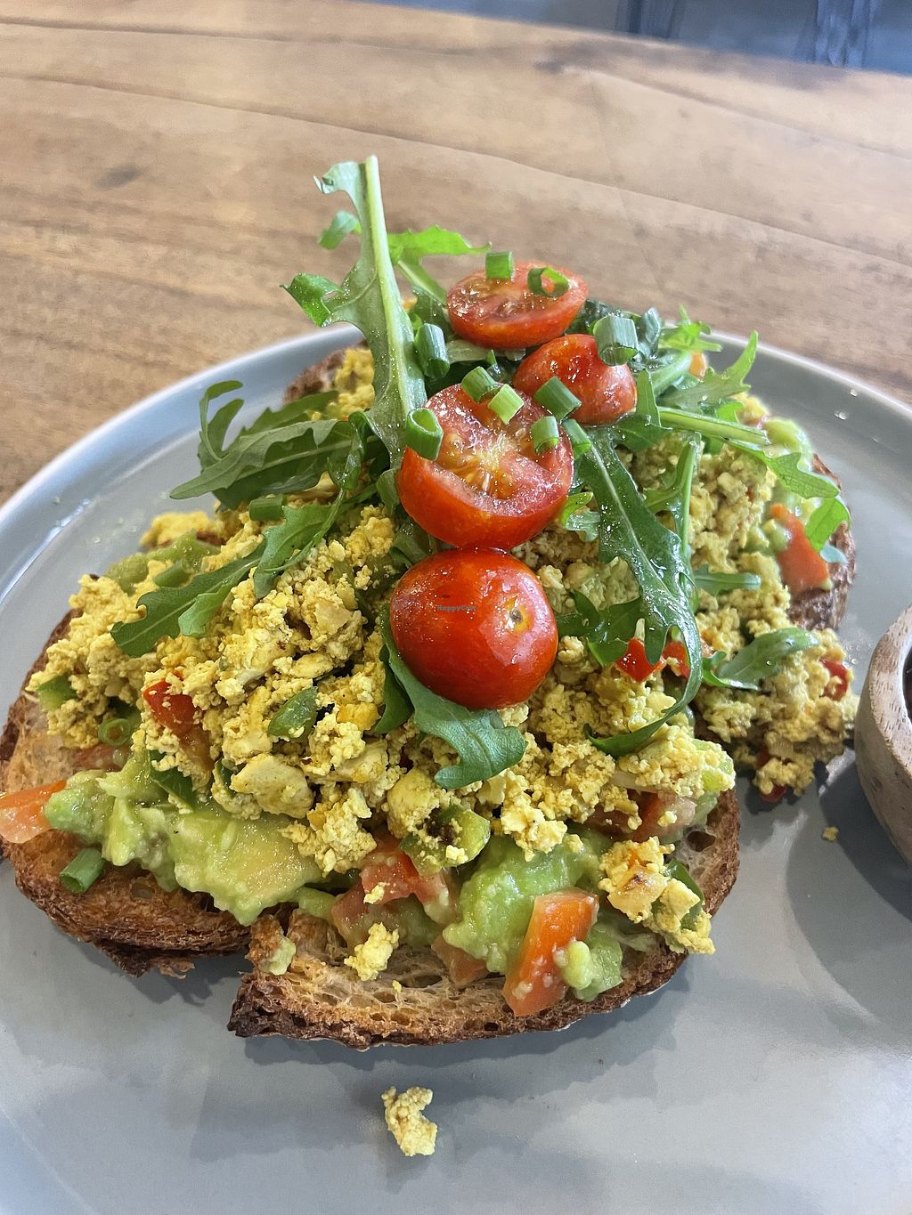 Pros: Sourdough toasted , Smashed avo tofu scramble , Prices