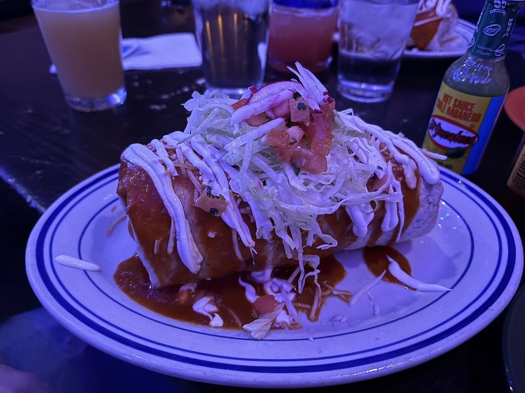 A vegan chorizo and mushroom wet burrito