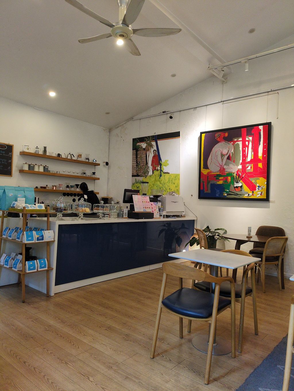 A specialty coffee roaster and cafe located in the Tay Ho district, popular as a workspace for digital nomads. The menu features a wide range of single-origin beans and espresso drinks, with oat milk available as a dairy-free alternative. Food options include a dedicated Vegan Banana Bread (gluten-free, egg-free, dairy-free, sugar-free) and savory choices like Roasted Vegetables and Hummus Toast. Open Mon-Fri 7:00am-6:00pm, Sat-Sun 7:00am-6:30pm.
