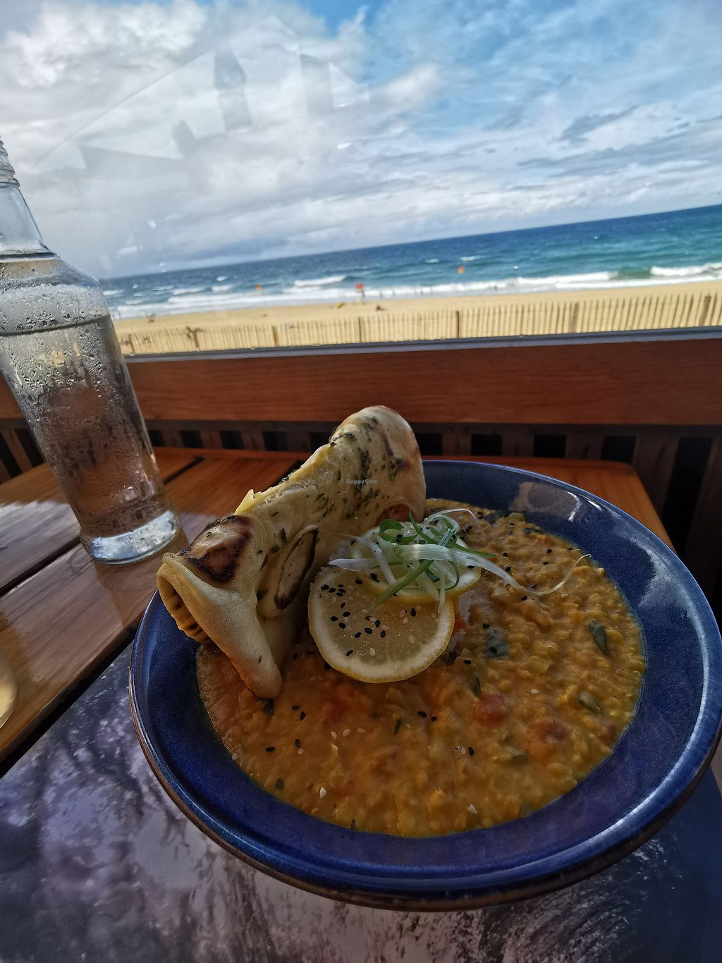 1 seule opion vegan, le Dahl de lentilles corail. Bon et très copieux ! J'ai aussi pris un mago fruit du dragon et goyave. Vue imprenable sur l'océan. Je recommande.