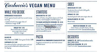 Vegan menu