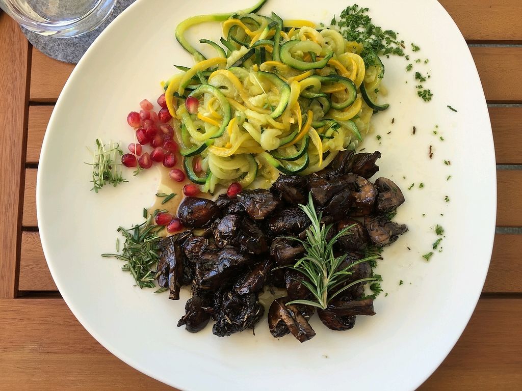 Zucchinispaghetti mit angeschwenkte Pilzen