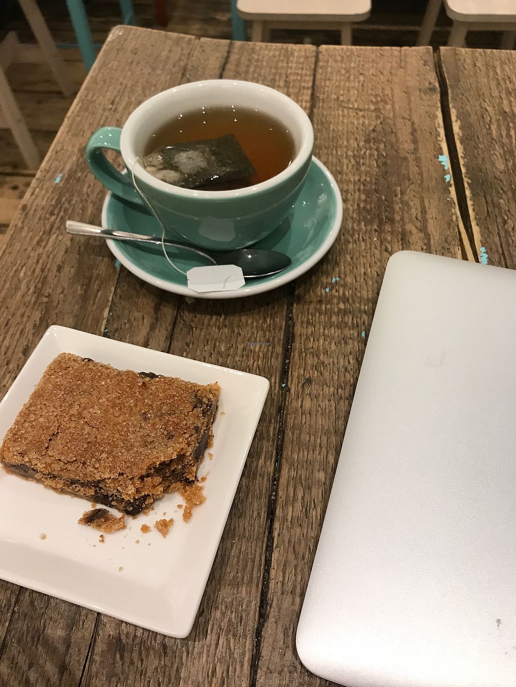 Peppermint tea with vegan peanut butter blondie