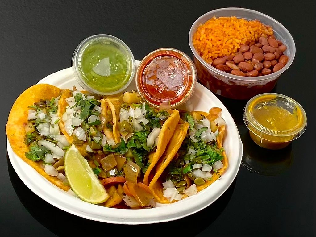 Serves meat, vegan options available. Local taco shop with vegan cactus and mushroom tacos. Vegetarian burrito and burrito bowl can be made vegan upon request. One of three locations. Open Mon-Sun 8:00am-10:00pm.