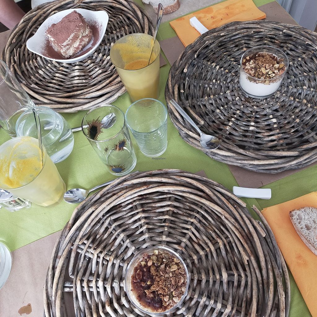 Read moreThe menu changes every week, with a choice of two starters, two mains and two sweets. I had stuffed tomatoes and rice for my main, and my friend had tagliatelle which was the other main dish. For my sweet I chose the stewed apples in chocolate mousse. They also have a good selection of organic beers and wines, and their own carrot and ginger juice (hence the name of the restaurant "Carottes Gingembre" - carrot and ginger juice).