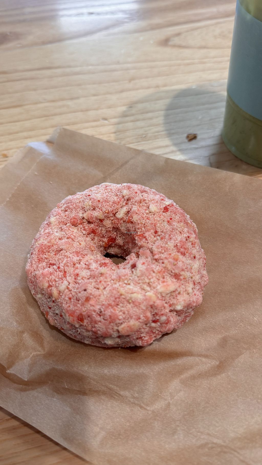 I also got the strawberry shortcake vegan donut, which is easily in my top 3 favorite donuts of all time. OF ALL TIME. And I’ve had a LOT of vegan donuts. Whoever they source it from KNOWS how to bake.