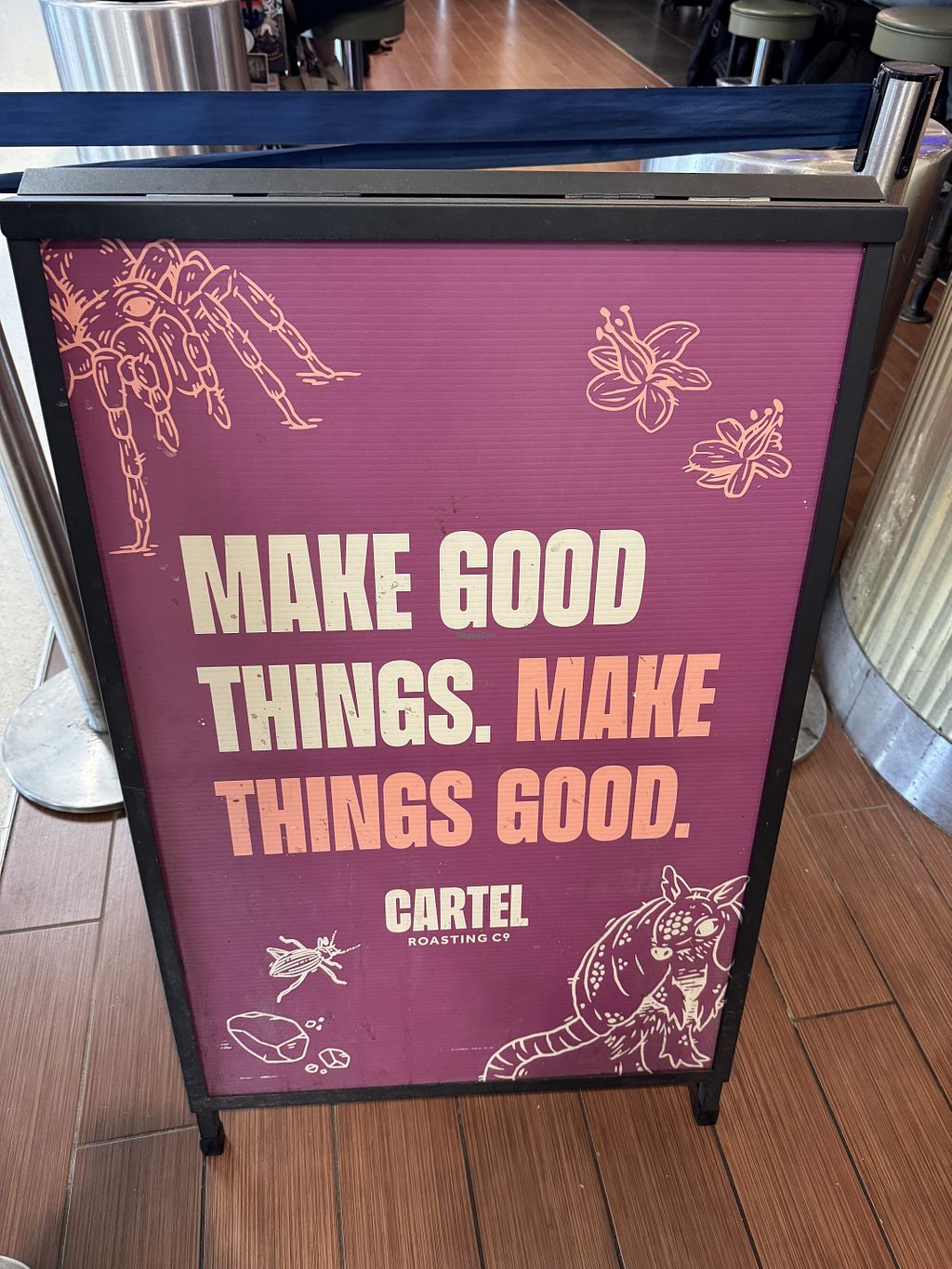FIVE STARS!! Cartel Coffee is a MUST. I walked from another section of the terminal immediately after landing to ensure I’d have time to visit.