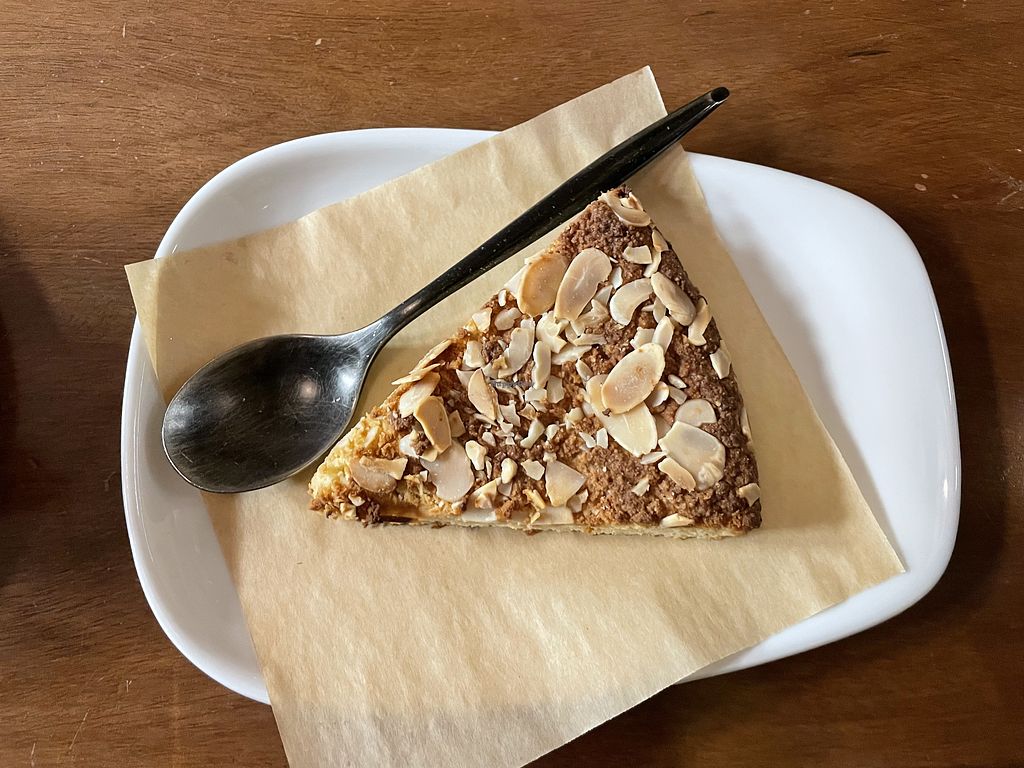 Todo lo que comí estuvo delicioso, a mis acompañantes les gustó más que sus comidas no veganas. El té (chai con leche de coco y semillas de cajuil) y el vegan almond cake estaban increíbles.