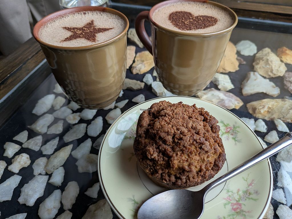 The matcha was very good. I tried the cacao drink with orange, and it was okay but not the best I've had. All their baked goods are vegan and gluten-free, which is awesome. I tried the pumpkin muffin and brownie and unfortunately didn't like either one. Like, took a bite and gave the rest to the birds.