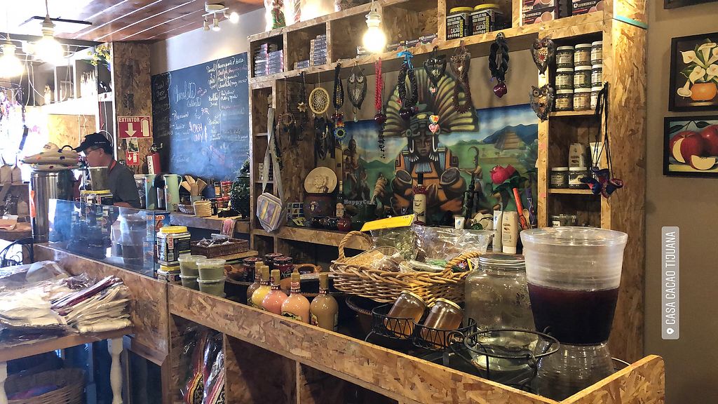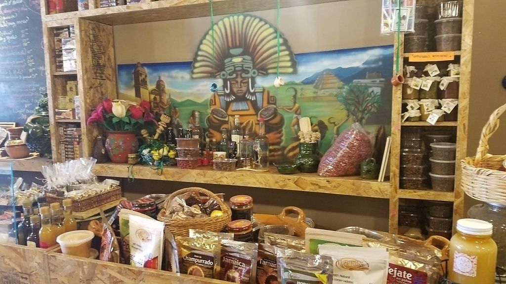 Serves meat, vegan options available. Serves organic pre-Hispanic food. Can make vegan hot chocolate with water, vegan tamales with vegan mole and vegan refried beans. Has organic coffee, a number of vegan sweets, vegan ice-cream and many different artisanal products. Makes vegan smoothies with cacao and has natural vegan drinks. Owners speak English and understand veganism. Please tell them you are vegan when you enter. Reported closed April 2022.