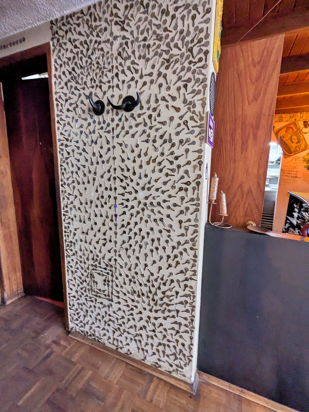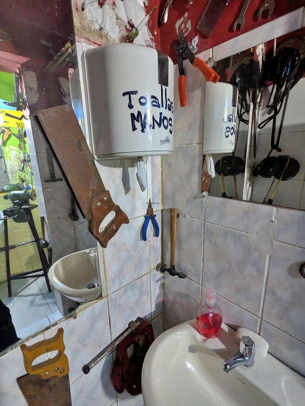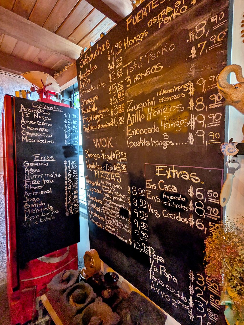 I'm not sure if we were there at odd hours when we arrived on a weekday around 4 or 5 PM, but we had to ring a bell at the entryway to be allowed inside. There was a chalkboard menu all in Spanish at the front. We ended up ordering two sandwiches - the tres hongos and tofu sprouts. She offered to have them split in half for us. Our food was delicious. It was such a fun, funky restaurant with interesting decor. Definitely check out the bathroom!