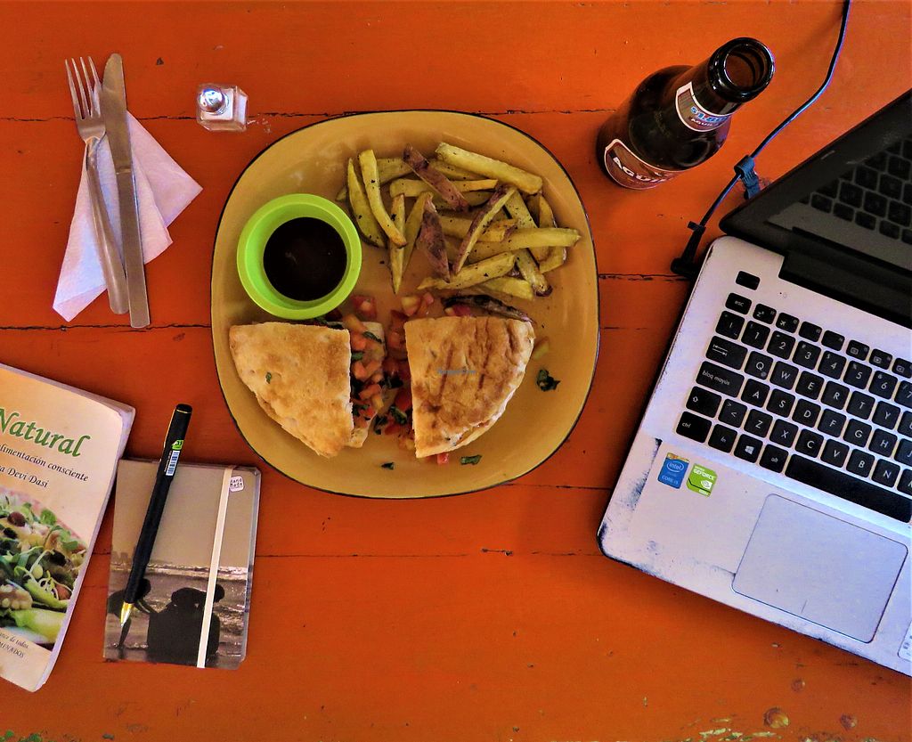 Pros: Lots of vegan options, Great atmosphere, tunes, art on display , Friendly staff (speak Spanish and English)
