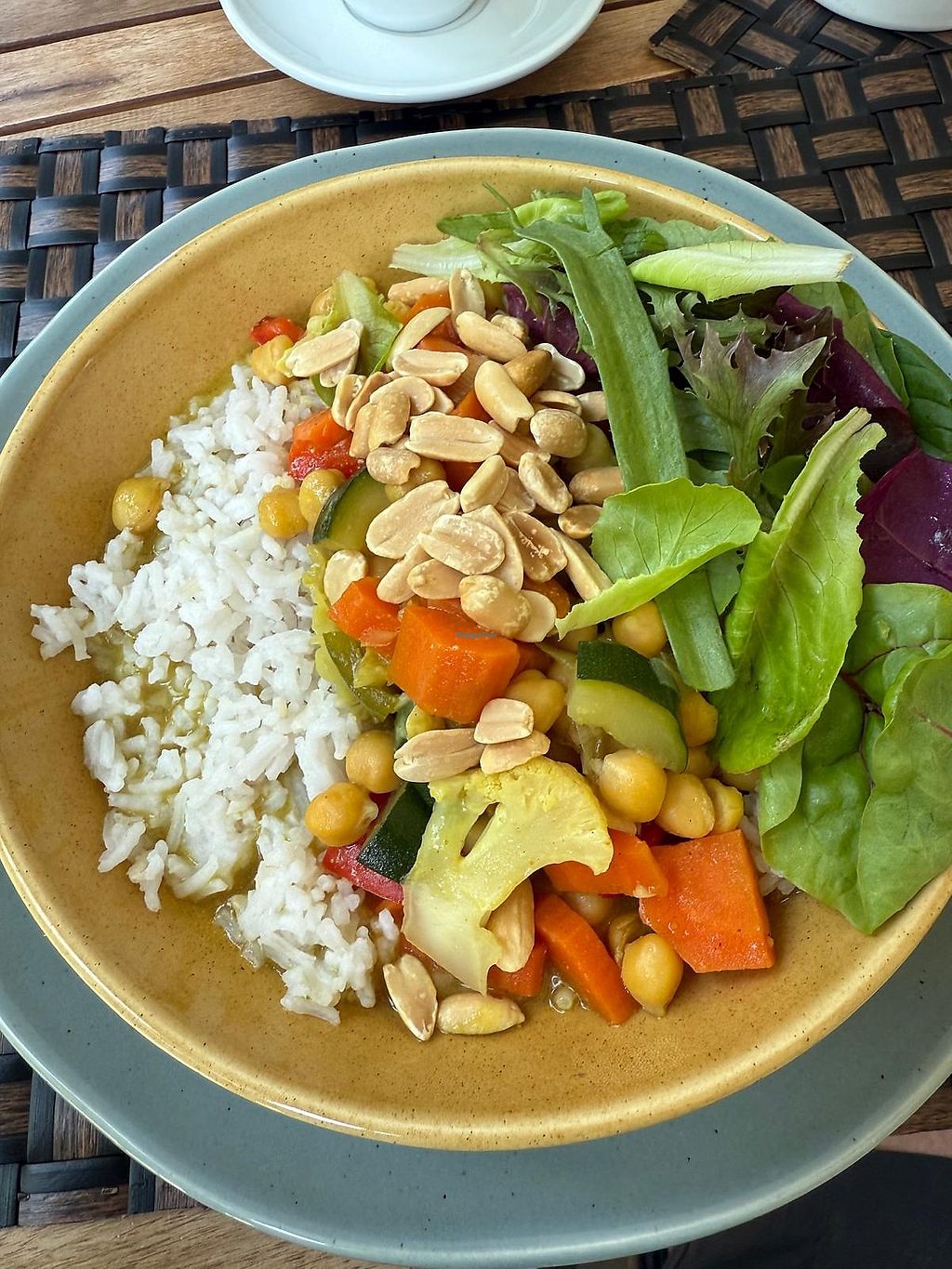 Great location in the middle of the garden and mostly veggie/vegan food (they also have some fish dishes & include these under vegetarian too). They have rice & soy milk for drinks. Got a curry dish and a deal of the day- very good value (included soup, main, dessert & coffee). Just one vegan cake option (cashew & orange?) The service was good and helpful indicating what was vegan/could be veganised (no mention of vegan options on menus etc). The food was a bit bland & the meal a bit of a random assortment but much better than what a lot of cafes/restaurants on the island.