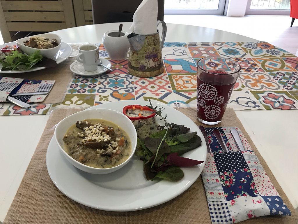 The food was creative and delicious (I was vegetarian at a time, but I believe my plate was all vegan), with very nice people and a great environment -- it is located in the the main botanical garden of the city.