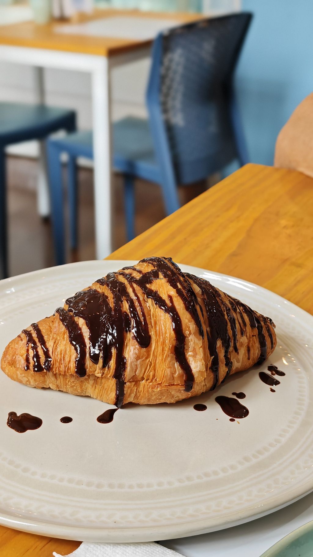 Fatia de bolo de banana com gotas de chocolate, pão de melado, sanduíc…