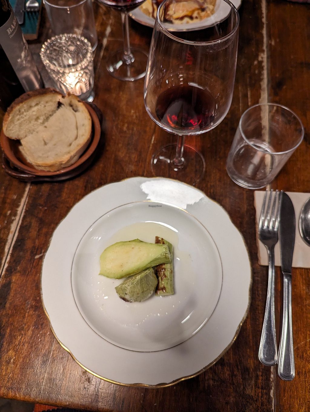 Read moreWe had three appetisers: pappa al pomodoro, a traditional Tuscan dish with wet bread in tomato sauce, the traditional “antipasto Piemontese” (a cold ratatouille), and a delicate cold salad with vegetables and vegan mayonnaise. We then had trofie (Ligurian fresh pasta) with fresh tomatoes, followed by homemade falafel and pea cream. We finished with a vegan mousse with wild fruit coulis. Bread, focaccia and grissini are homemade with their wheat flour. Also the red wine we had is made out of their own vineyard.