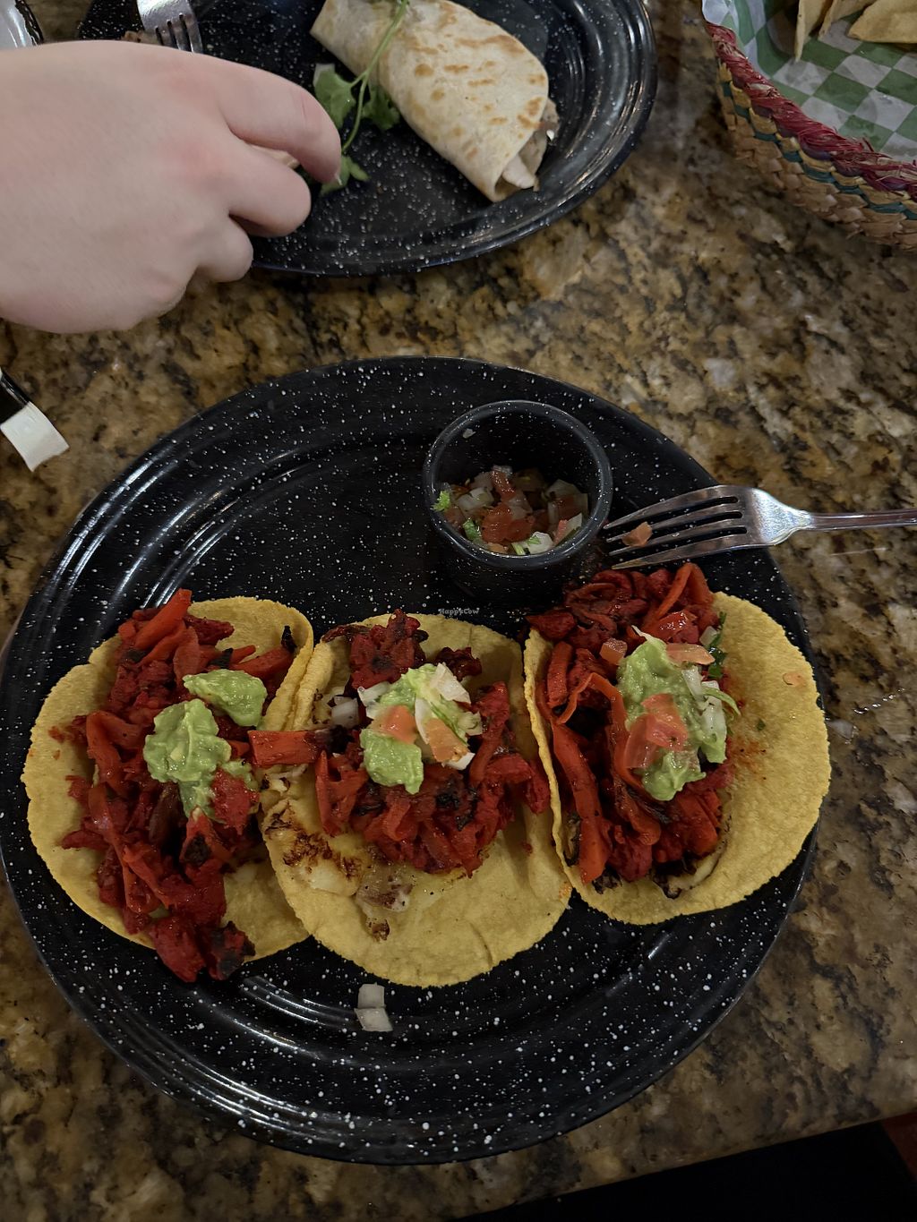 I think their vegan part of the menu is nice in that they have one. All I had was vegan enchiladas but my husband ate as well but not veg. TBH, I thought the food was only fair. It seemed way overpriced for what the quality was. The mushrooms seemed like they came from a can and the tortillas did not seem house made. I did have a great non alcoholic club soda 🥤 michelada and I did like their selection of salsas that came with the chips. The atmosphere was nice and it’s seems like one could enjoy some nice tequila there.