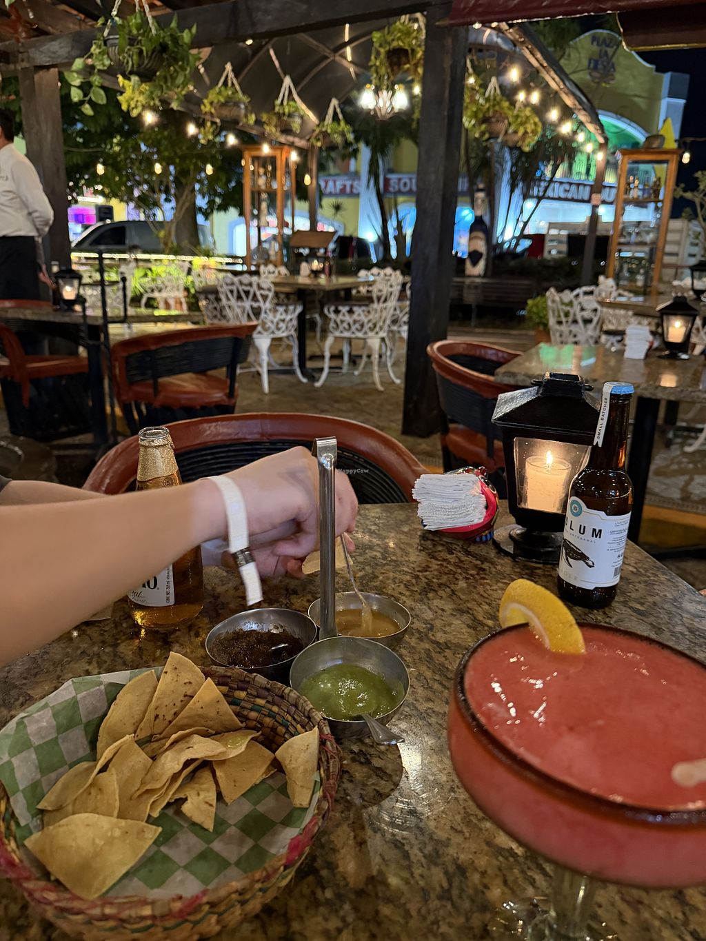 I really wanted to like this place as the staff and the atmosphere were great but the food was below average. We tried tacos as well as the dish with pumpkin flowers and the former did not taste good and the latter was very bland. Even the complimentary nachos were stale. The best thing about our dinner was the daiquiris, which were great.
