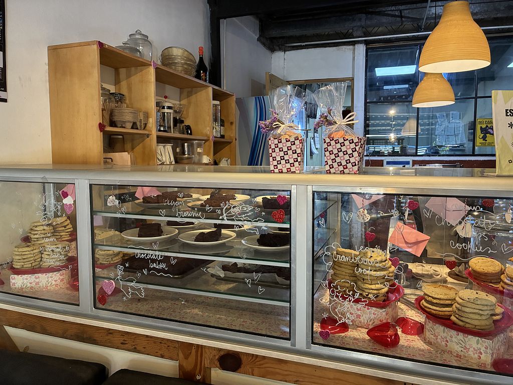 The place is chill, and pet friendly. And have many vegan options from pizza with sunflower cheese, 3 different vegan sandwiches, vegan nachos and fries, vegan apple pie toast, vegan strawberry toast, vegan shroom toast, pretezel, babkas and soy burger