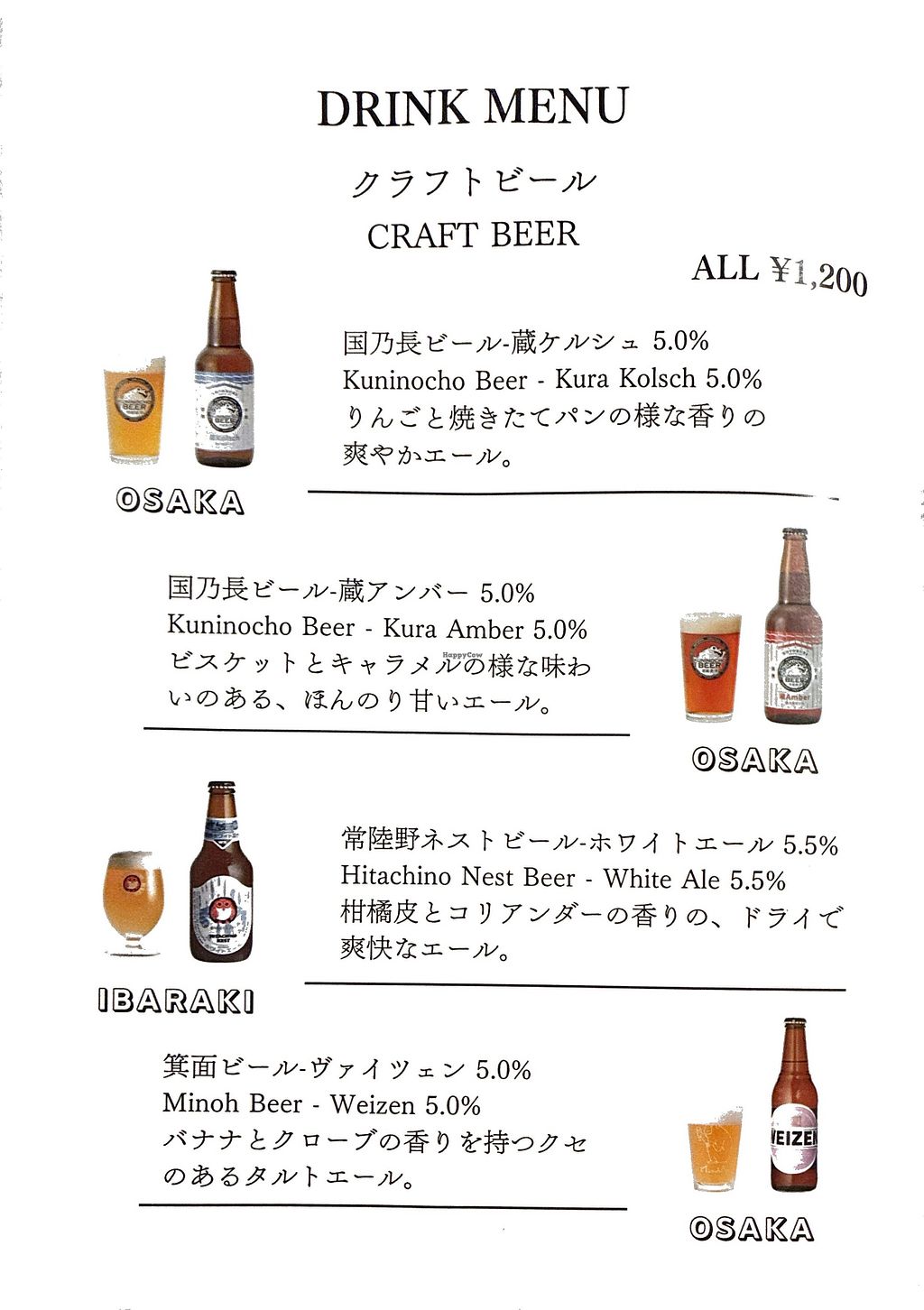 Craft beer menu