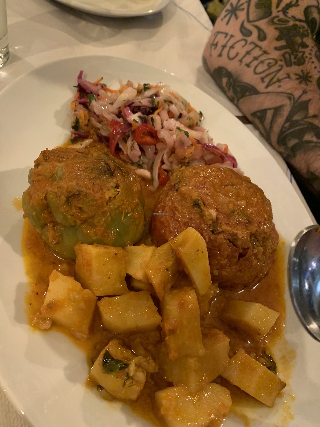 I expected way more options here! The yemista were ok but i have had better, they also didn't have chickpeas as per tje menu. The hummus and grilled vegetables platter was okay but these two you can get almost everywhere vegan. Their potatoes had good quality and their salad was not so tasty. I would try the next door option next time! No one was rude or sth