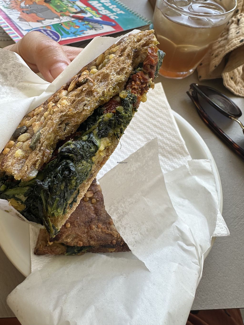 They have a vegan pizza-sandwich stuffed with sauted chicory, vegan crossaints, soy milk and vegan pistacio ice cream, which was pretty good. The Sandwich was good but nothing special. It wasn‘t marked vegan either, so i had to ask.