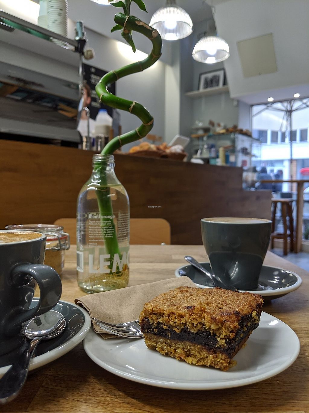 Vegan date cake and oat flatwhites