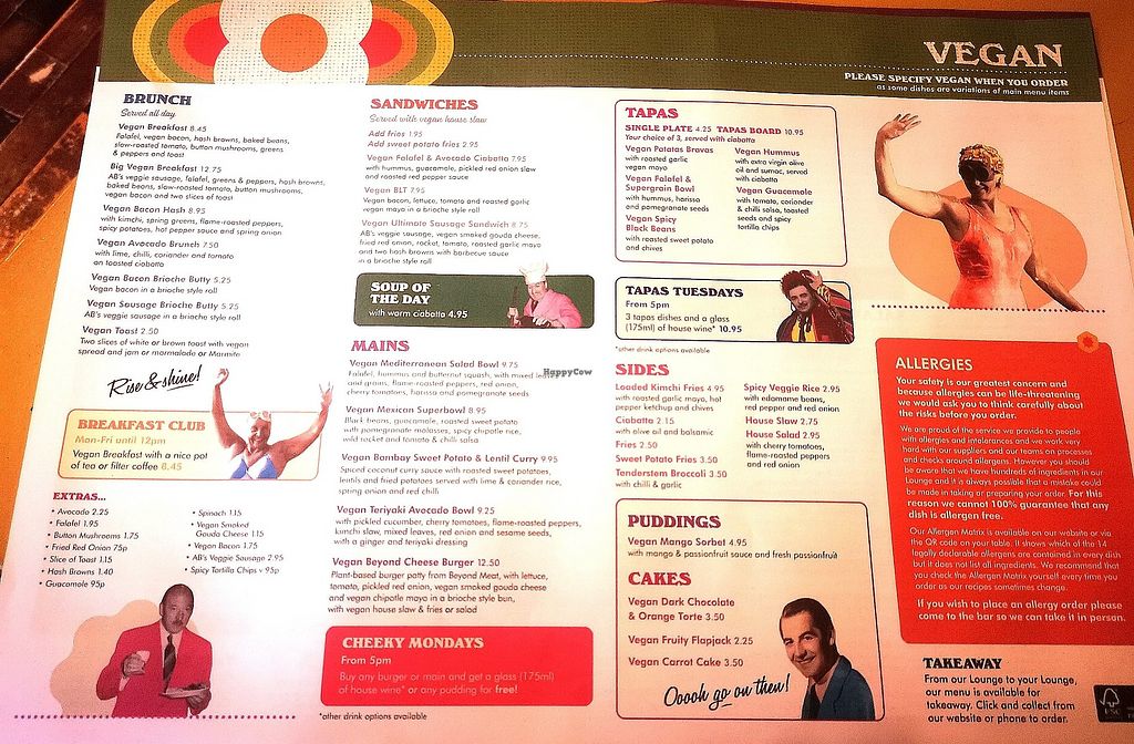 Standard loungers menu which has plenty of vegan options including breakfast.