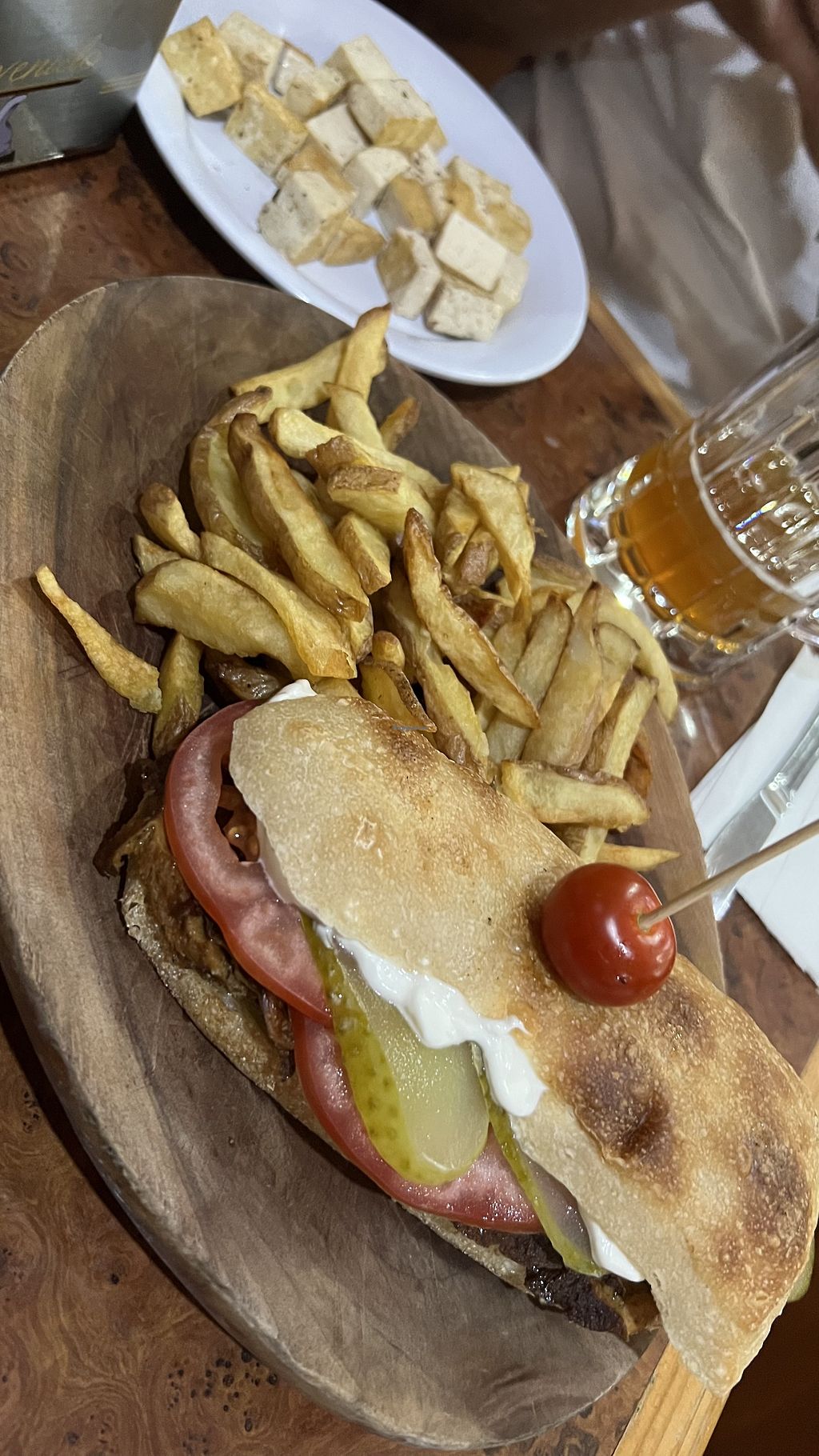 Totally delicious seitan sandwich (Hacienda) made in ciabatta with delicious skin-on fries. Friendly staff and lovely all-round