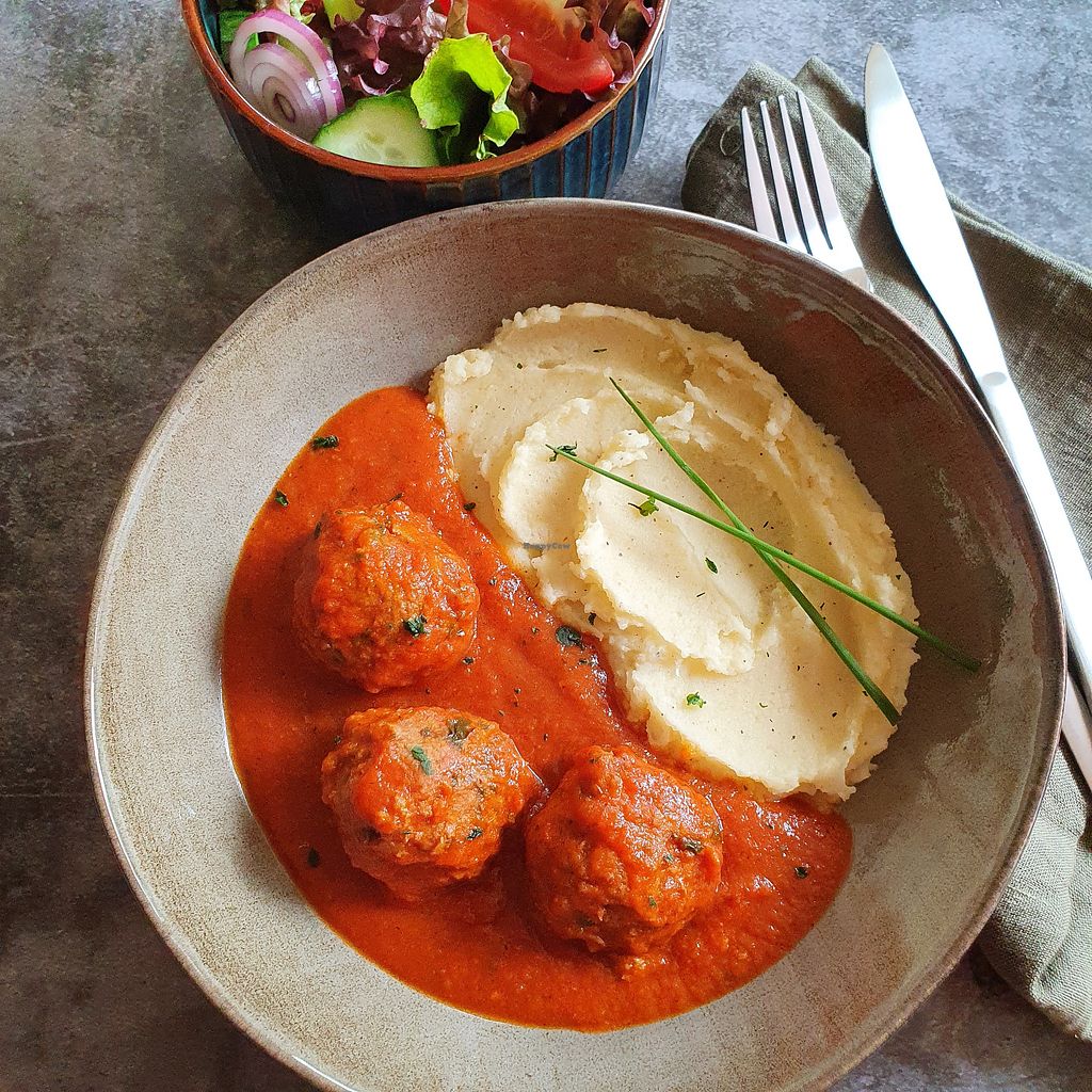 Heel vriendelijk en vlot, superlekkere vegan balletjes in tomatensaus!